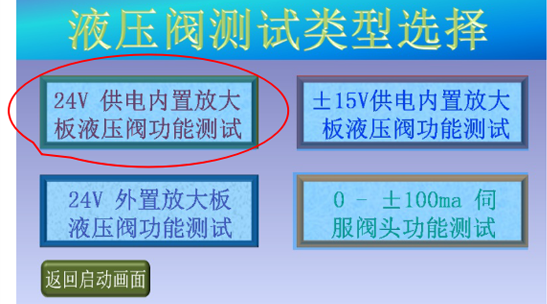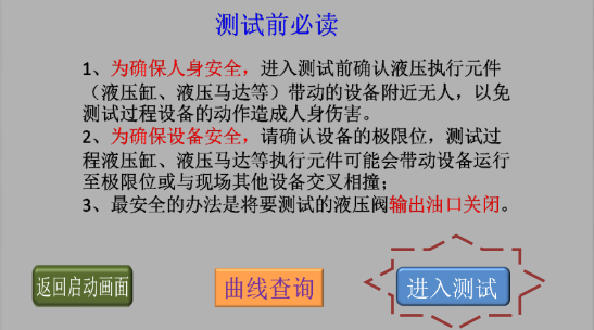 3、確認現(xiàn)場人員和設備安全后,點擊“進入測試”,進入液壓閥測試類型選擇畫面;