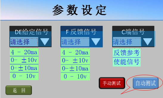 7、手動測試基本正常后,點擊屏幕左下方的返回鍵,返回參數(shù)設定畫面;
