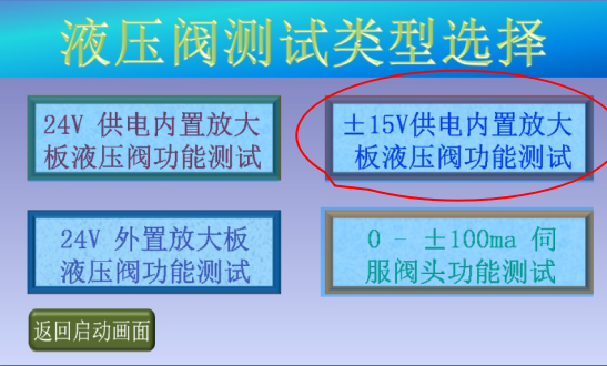 3、確認現(xiàn)場人員和設(shè)備安全后,點擊“進入測試”,進入液壓閥測試類型選擇畫面;